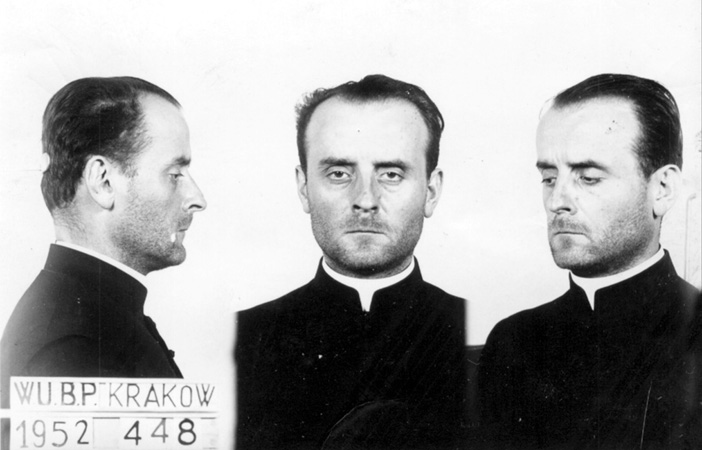 Ks. Józef Fudali, skazany wyrokiem WSR w Krakowie z 13 maja 1953 r. na 13 lat więzienia. Zmarł w trakcie odbywania kary 30 stycznia 1955 r. Fotografiawykonana w WUBP w Krakowie 25 września 1952 r.