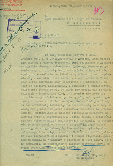 Karta śledcza Franciszka Niepokólczyckiego (1901-1974)