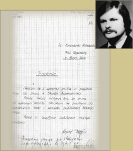 | Podanie Janusza Włodarczyka o przyjęcie do SB w Komendzie Wojewódzkiej MO w Nowym Sączu | Podanie Krzysztofa Trenzingera o przyjęcie do SB w Komendzie Wojewódzkiej MO w Nowym Sączu |