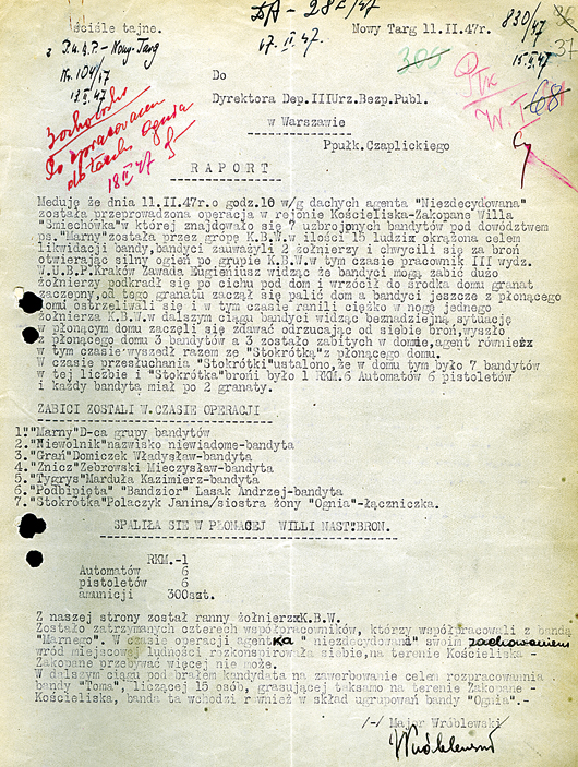 Raporty z akcji przeprowadzonej przez UB i KBW w Kościelisku 11 lutego