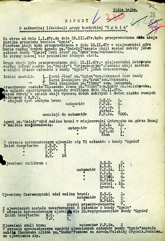 „Ognia” i raport o likwidacji sztabu Zgrupowania.