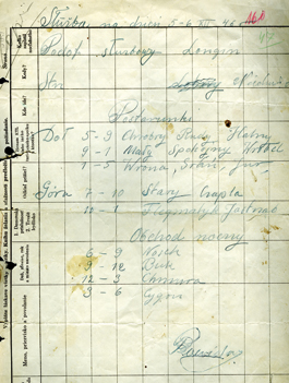 Podział dyżurów wartowniczych w 2 kompanii dowodzonej przez Jana Kolasę „Powichra”. Tatry, grudzień 1946 r.